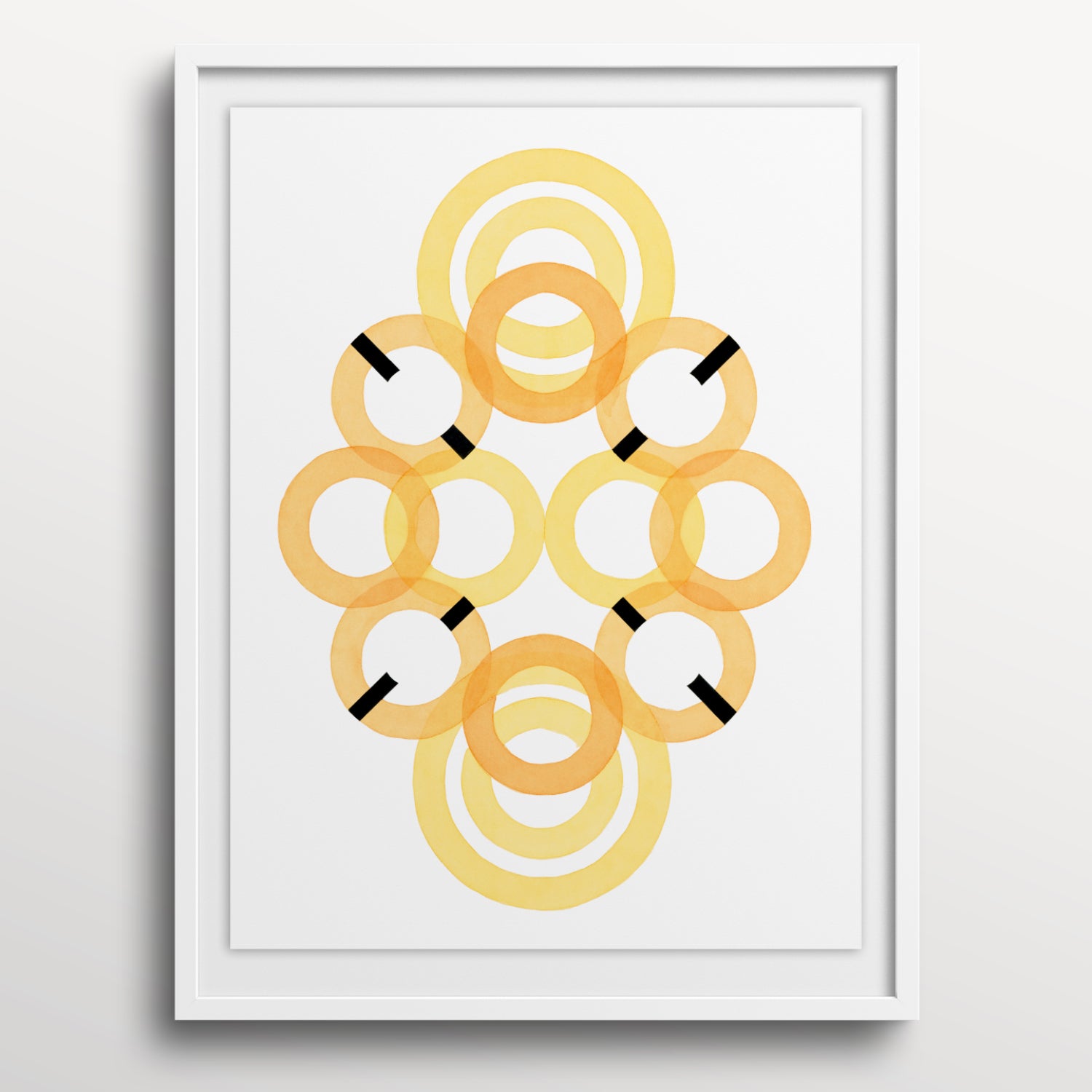 22 1/2 x 22 1/2 inches. Framed. Watercolour and acrylic on art board.