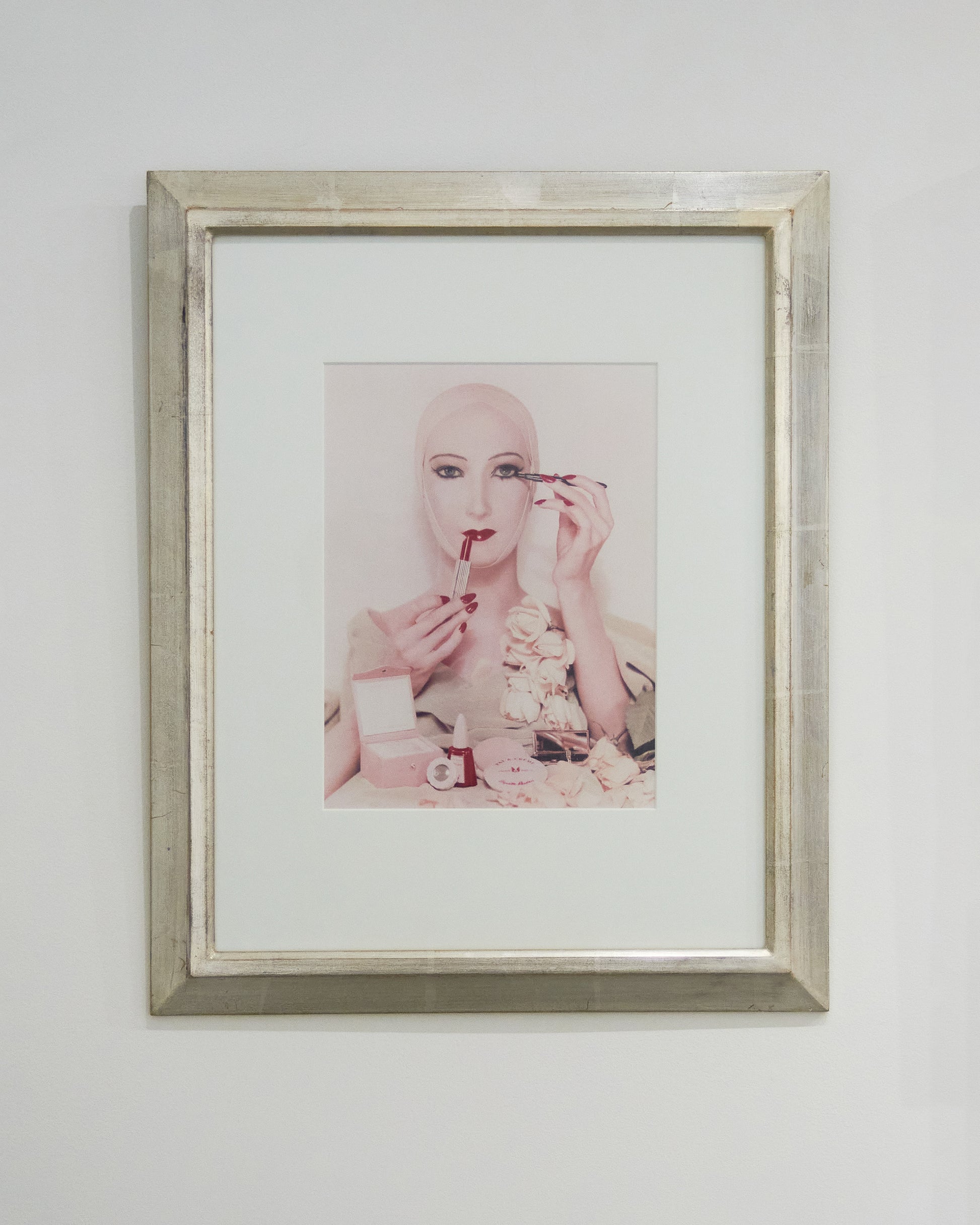 The work is part of a set from the age of elegance. A mannequin in her makeup. A distortion of photography using a mixture of real and faux models.